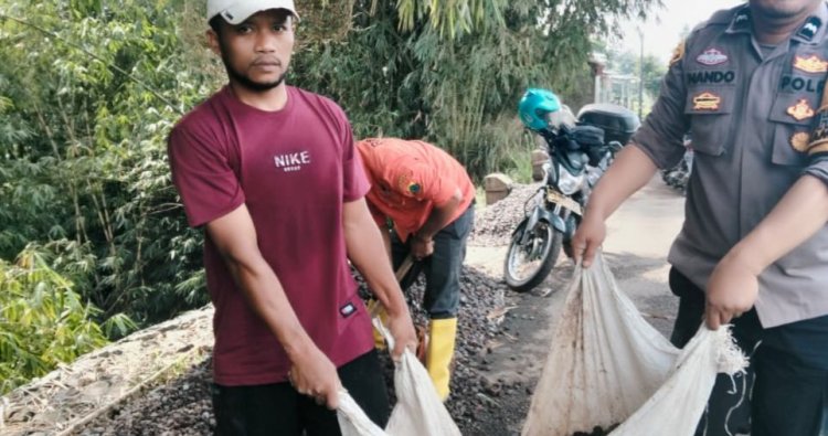 Sinergi Bhabinkamtibmas Dan Warga Dalam Gotong Royong Pembangunan Jalan Desa Di Bunikasih